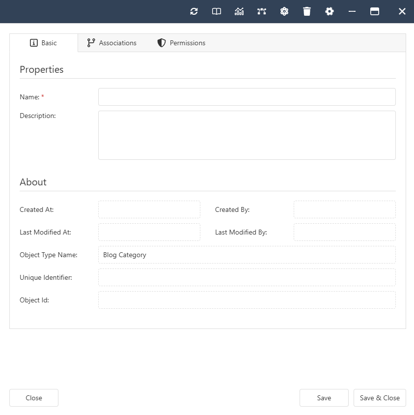 The Blog Category Object Type inherits the "Forum Category" Object Type and is used under Blogs as a container for Blog Posts.