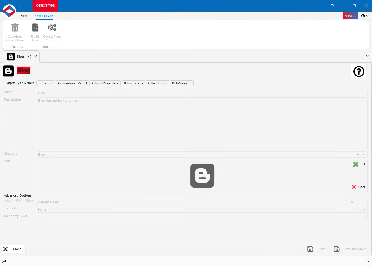 The Blog Object Type inherits the "Forum Board" Object Type and is used as the root for the Blog Atom.